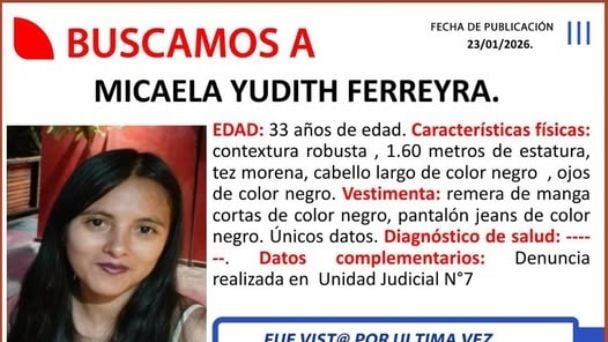 Las fuerzas de seguridad de la provincia de Catamarca desplegaron un intenso operativo de búsqueda para localizar a Micaela Yudith Ferreyra, una mujer de 33 años cuyo paradero se desconoce desde el pasado 20 de enero. De acuerdo a la información oficial, la mujer fue vista por última vez alrededor del mediodía en inmediaciones del […]