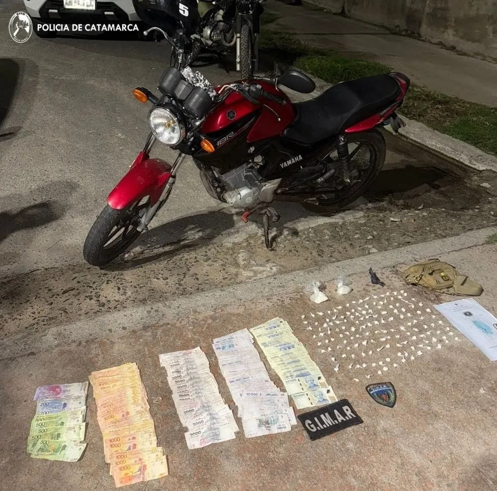Tras un operativo policial, dos hombres fueron detenidos en el barrio Libertador II, donde incautaron droga, dinero y una moto.