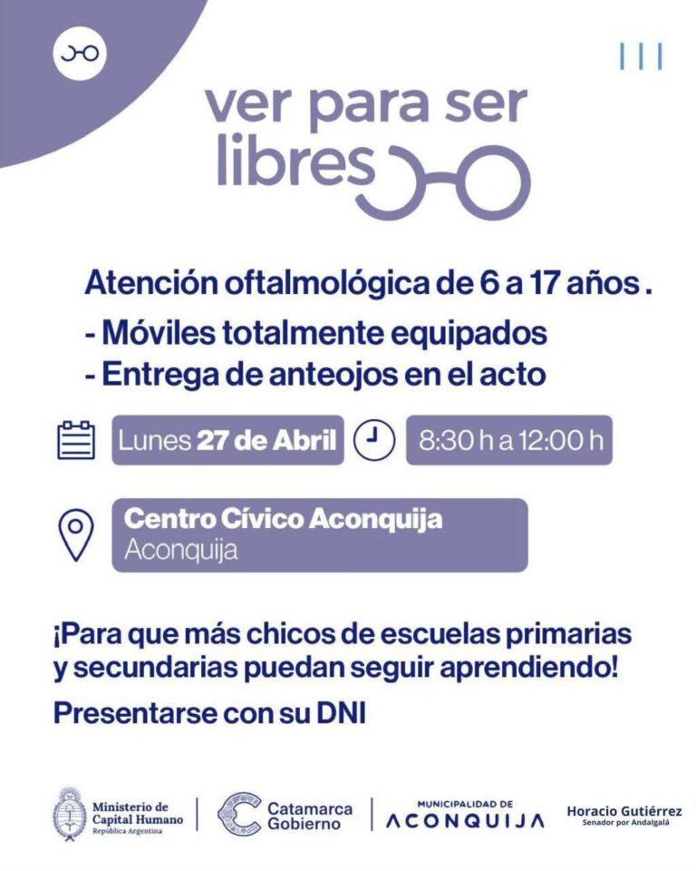 Locales 𝗔𝗰𝗼𝗻𝗾𝘂𝗶𝗷𝗮: 𝗵𝗮𝗿𝗮́𝗻 𝘂𝗻𝗮 𝗷𝗼𝗿𝗻𝗮𝗱𝗮 𝗱𝗲 𝗰𝗼𝗻𝘁𝗿𝗼𝗹𝗲𝘀 𝗼𝗳𝘁𝗮𝗹𝗺𝗼𝗹𝗼́𝗴𝗶𝗰𝗼𝘀 𝗴𝗿𝗮𝘁𝘂𝗶𝘁𝗼𝘀 𝗽𝗮𝗿𝗮 𝗰𝗵𝗶𝗰𝗼𝘀 𝘆 𝗮𝗱𝗼𝗹𝗲𝘀𝗰𝗲𝗻𝘁𝗲𝘀 abril 23, 2026