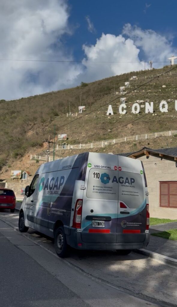 La Oficina Móvil de AGAP ya se encuentra brindando atención este viernes 12 de diciembre en la localidad de Aconquija, con el objetivo de facilitar trámites y asesoramiento a los vecinos y vecinas.