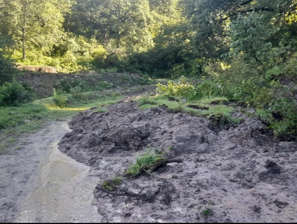 El tránsito se encuentra interrumpido por la presencia de derrumbes y caída de árboles sobre la calzada, lo que representa un riesgo para la circulación.