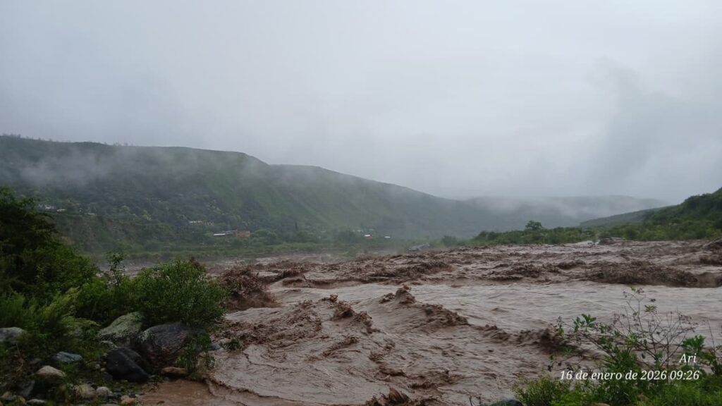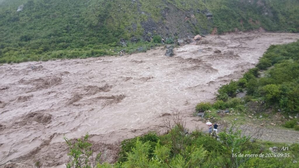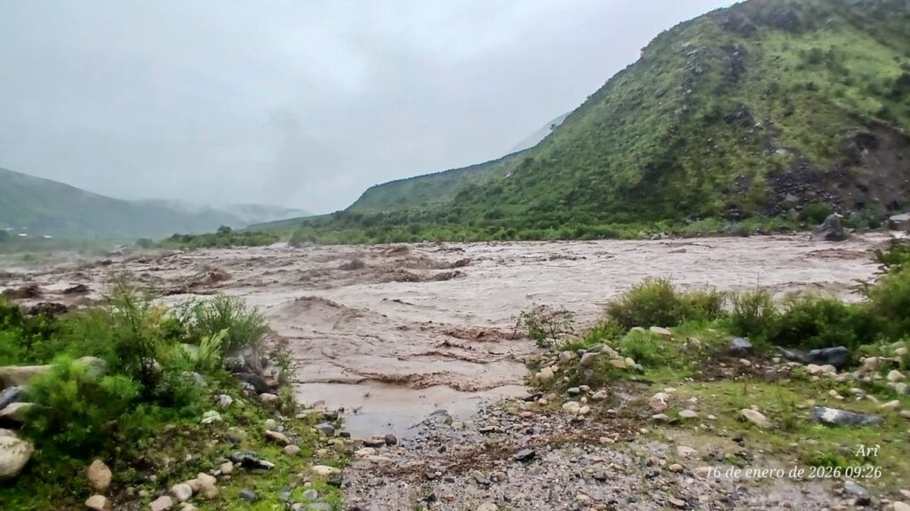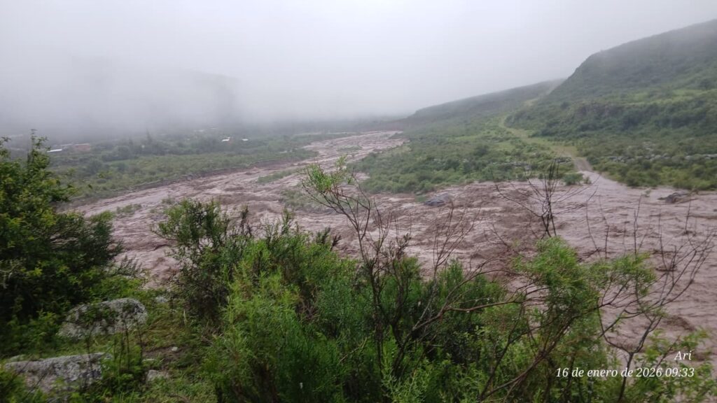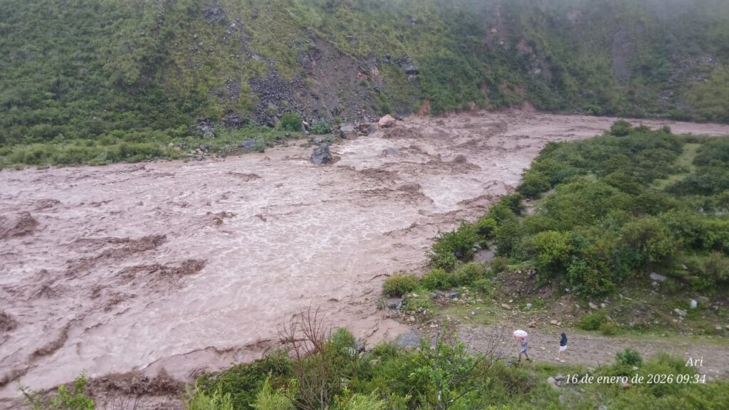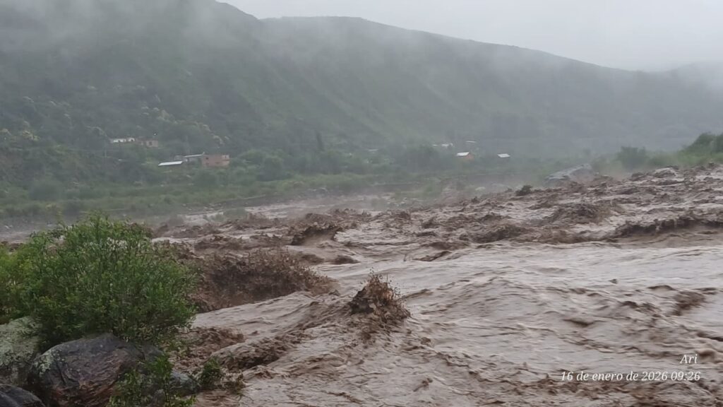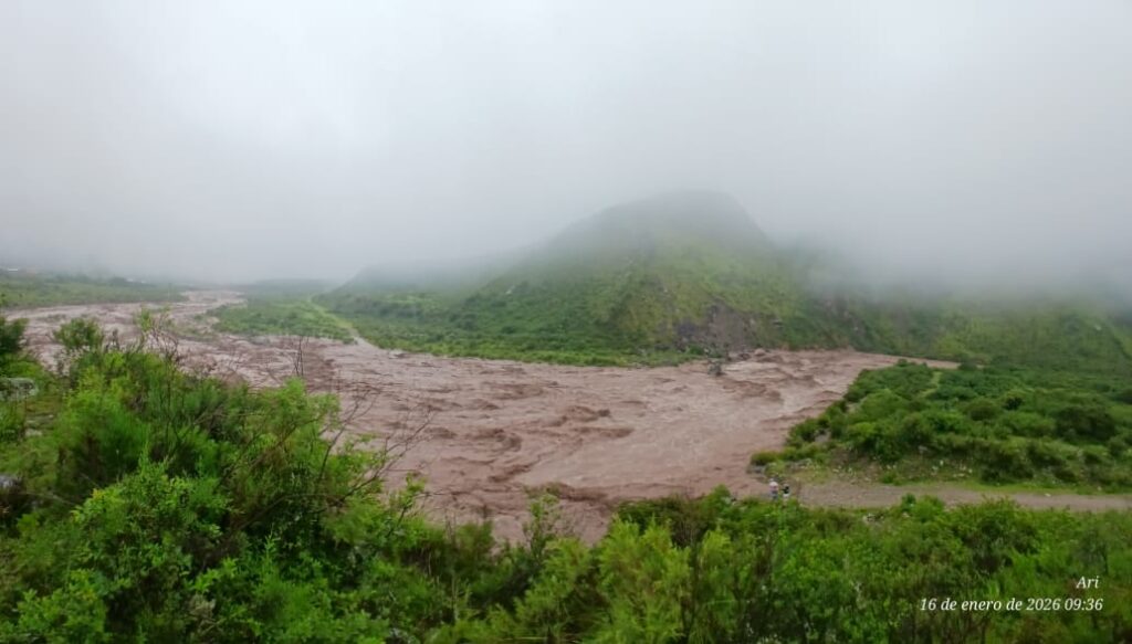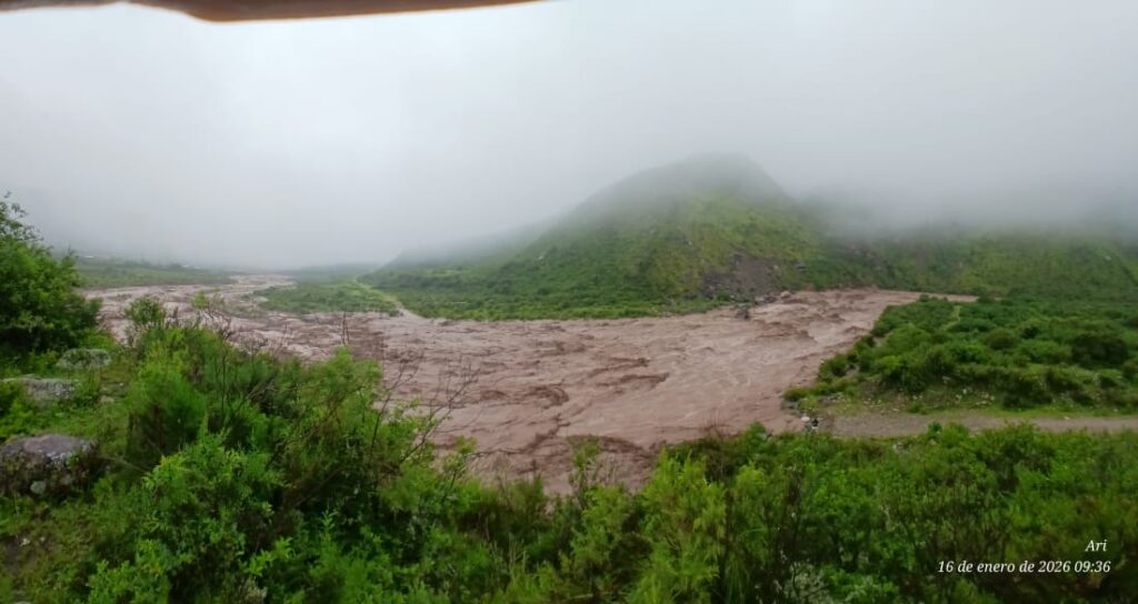 Durante el transcurso de la mañana de hoy, la localidad de Aconquija se vio afectada por la crecida del Río del Campo, como consecuencia de las intensas lluvias que persisten en la zona.
