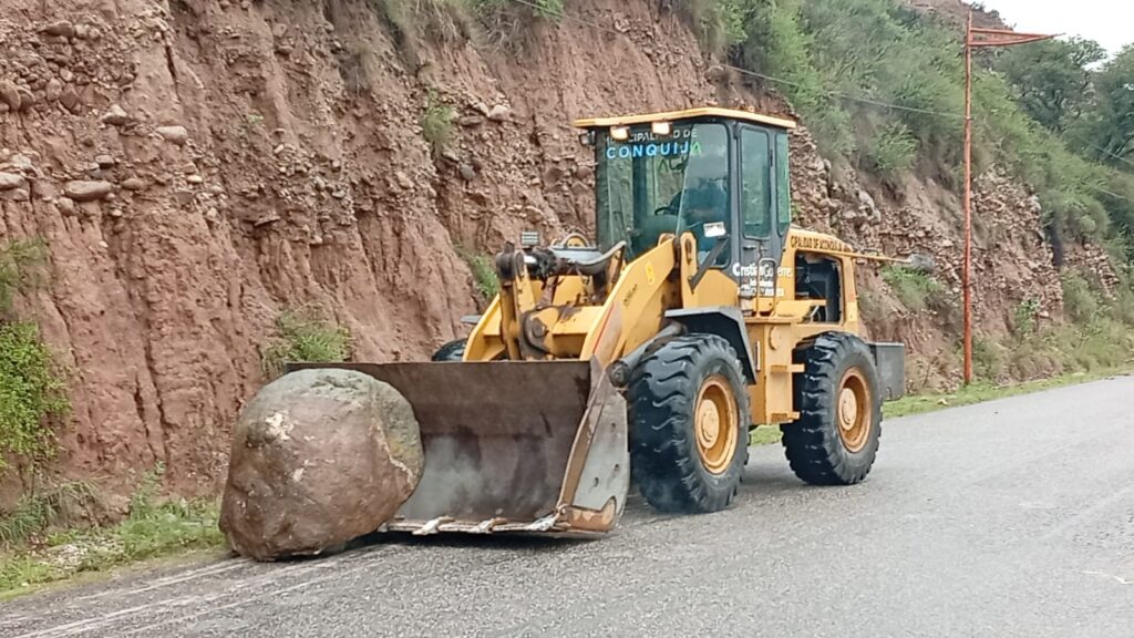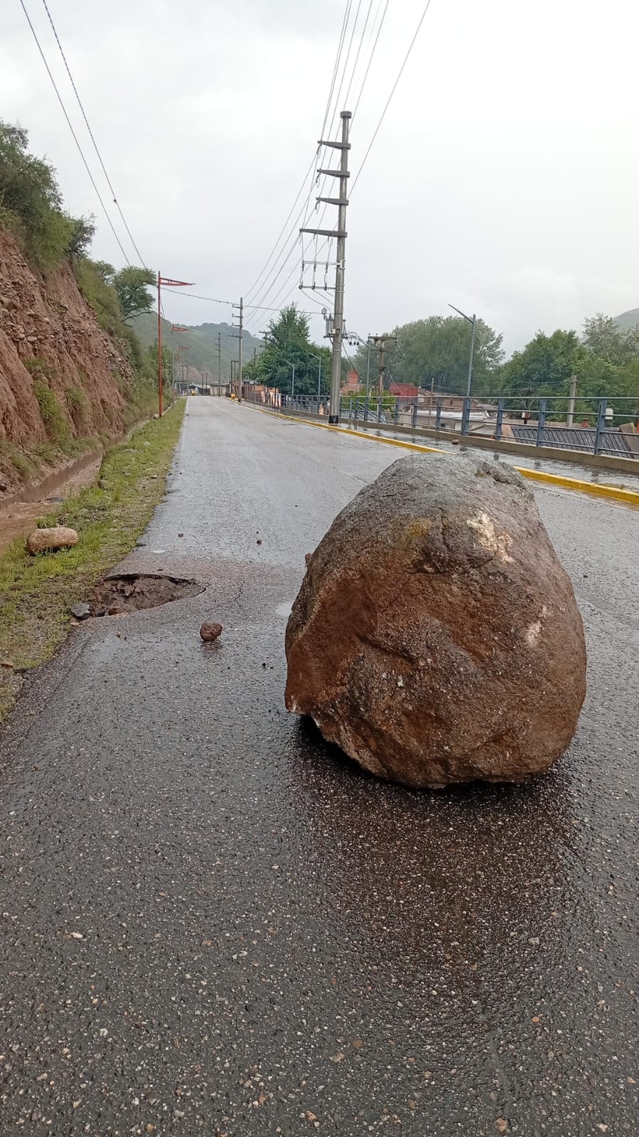 En los últimos minutos se registró un desprendimiento de una piedra de gran tamaño desde la loma en la localidad de Aconquija, específicamente en la zona de El Alamito, sobre la Ruta Provincial N.º 48.