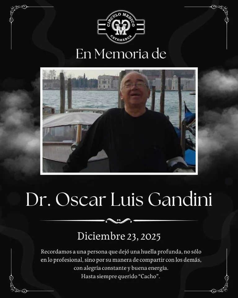 El Círculo Médico de Catamarca confirmó este martes la partida de quien era conocido afectuosamente como “Cacho”. Gandini se graduó como médico en la Universidad Nacional de Córdoba en septiembre de 1972 y dedicó gran parte de su vida al ejercicio de la Psiquiatría, especialidad que desempeñó con vocación, compromiso y una marcada cercanía con pacientes y colegas.