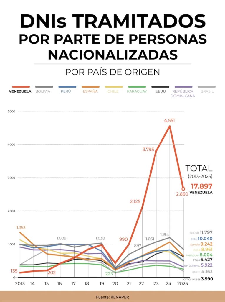 Entre 2013 y agosto de 2025, un total de 118.597 ciudadanos extranjeros tramitaron su primer DNI argentino, según datos oficiales del Registro Nacional de las Personas (RENAPER). Las cifras reflejan el peso creciente de la migración venezolana, boliviana y paraguaya, en un contexto marcado por cambios regionales, crisis humanitarias y recientes modificaciones en la política migratoria nacional.