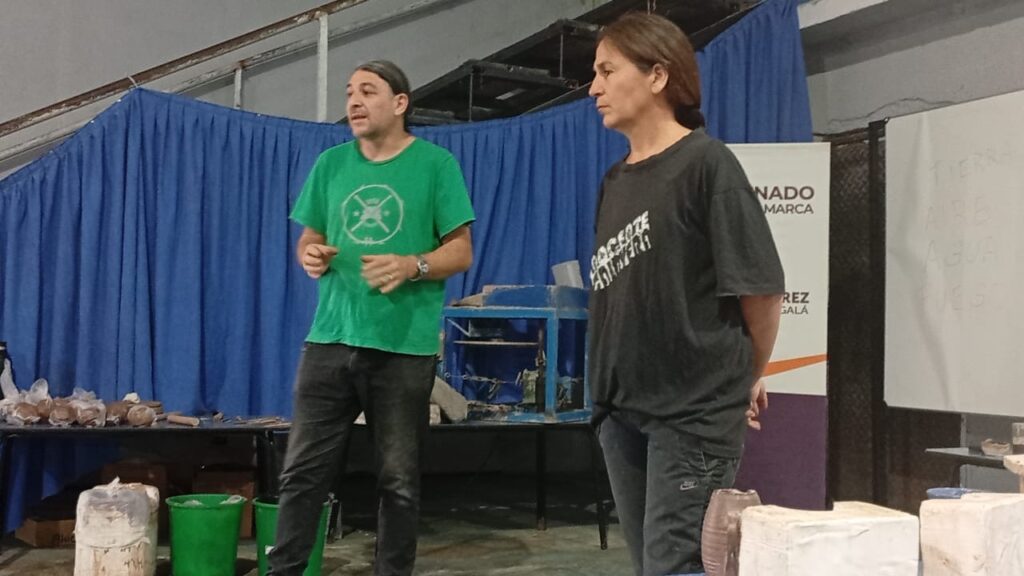 Durante el primer encuentro, los instructores Mariela y Rodrigo Ramírez ofrecieron una explicación detallada sobre herramientas, materia prima y los elementos fundamentales que intervienen en el proceso de trabajo con arcilla, incluyendo factores que pueden influir positiva o negativamente, como el aire, el fuego y el agua.