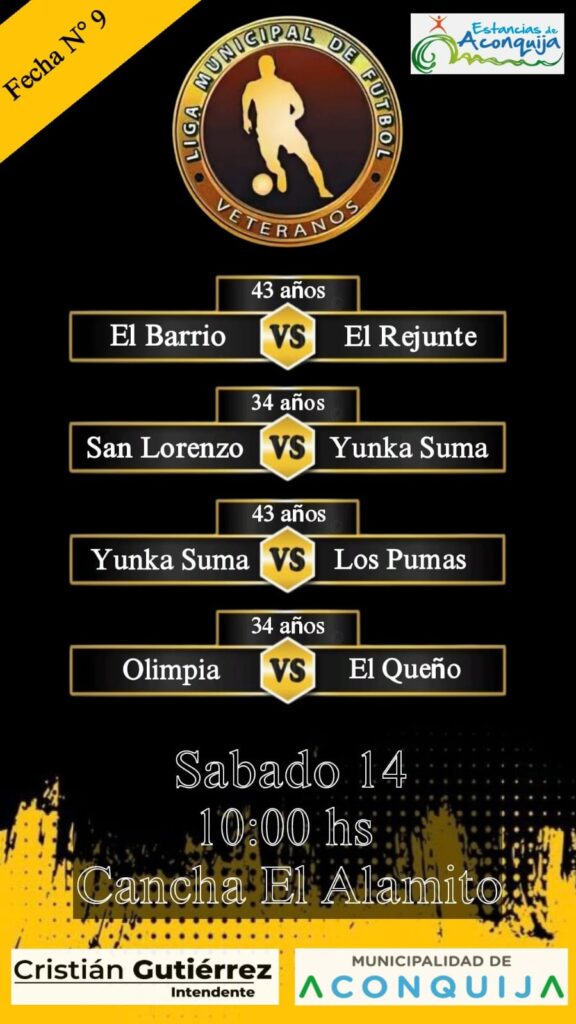 La Liga de Veteranos entra en un tramo decisivo con la programación de la fecha 9, que promete emociones fuertes y partidos de gran atractivo. Este sábado, desde las 10:00 horas, la acción se trasladará a la cancha de Alamito, escenario donde se definirá mucho en la tabla de posiciones.