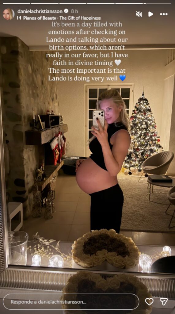 “Tengo fe en los tiempos divinos. Lo más importante es que Lando está muy bien”, expresó Christiansson, acompañando el mensaje con una imagen en la que mostró su panza.