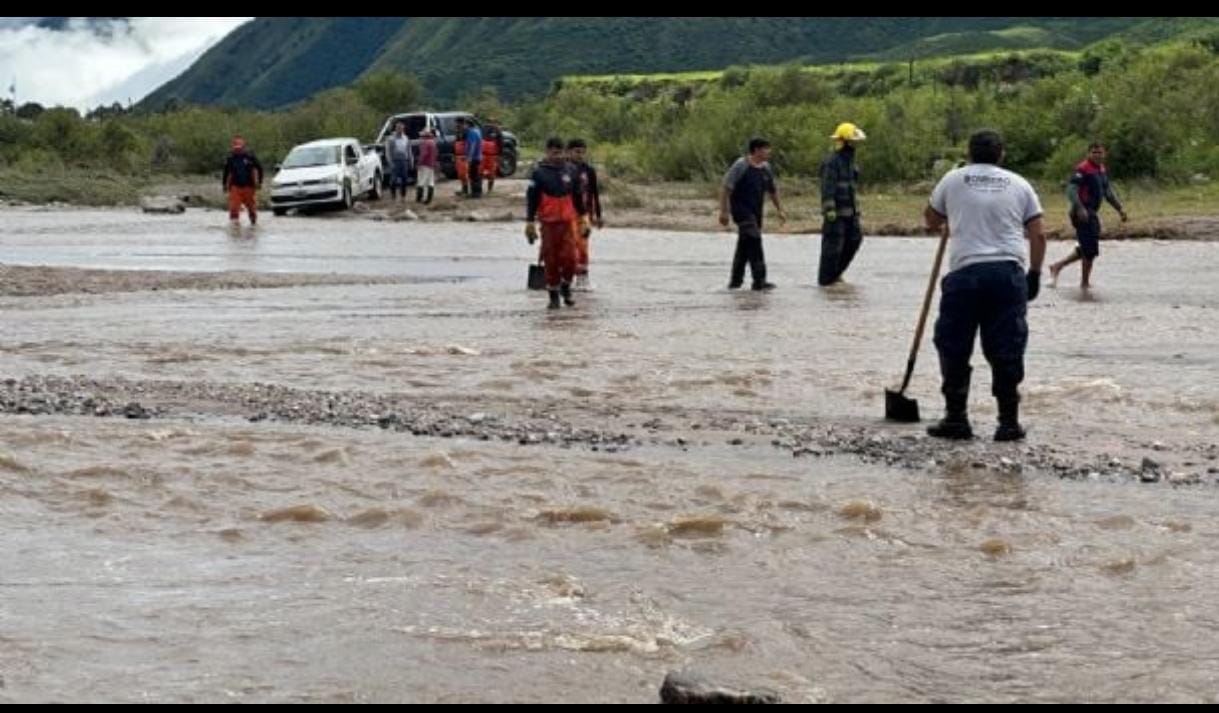 El episodio se produjo cuando la camioneta Volkswagen Saveiro blanca en la que se desplazaban fue sorprendida por el aumento repentino del caudal, quedando varada en medio del río y expuesta al peligro de ser arrastrada por la corriente.