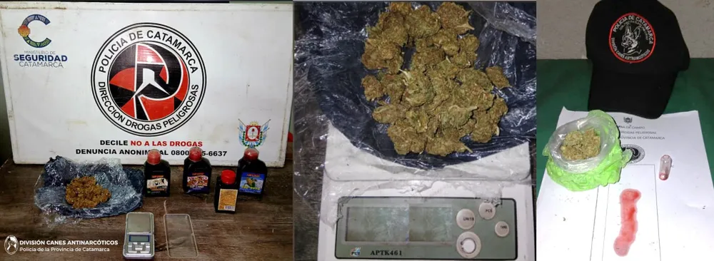 Durante la jornada de ayer, efectivos de la División Canes Antinarcóticos, dependientes de la Dirección Drogas Peligrosas de la Policía de la Provincia, realizaron dos procedimientos con resultados positivos. Con intervención del Juzgado Federal, los operativos se llevaron a cabo primero en el puesto caminero “La Viña”, ubicado sobre Ruta Nacional N° 38 en el departamento Paclín, donde se inspeccionó un colectivo de larga distancia. Luego, las tareas continuaron en un depósito de encomiendas ubicado en el centro de la Ciudad Capital.