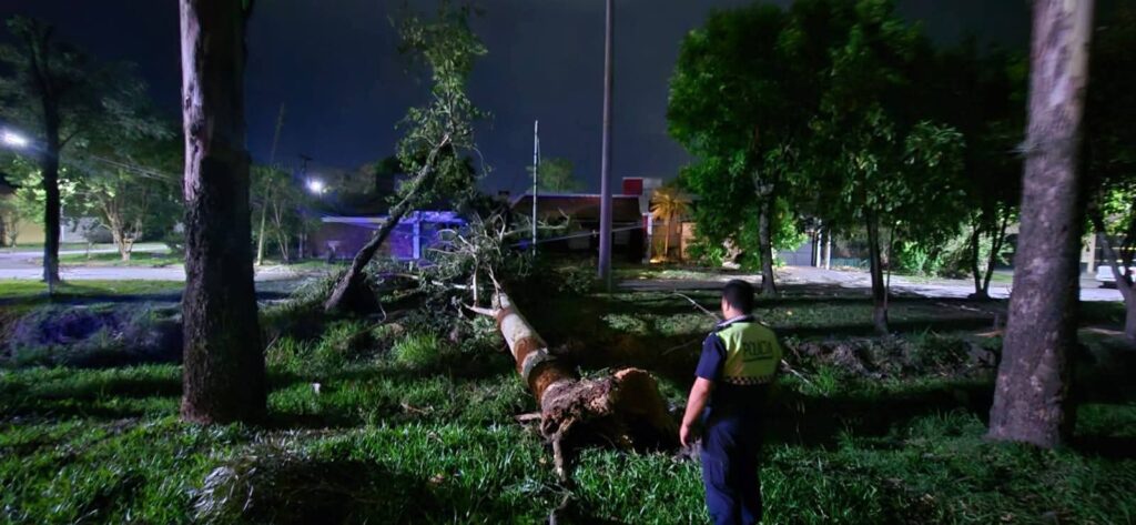El fenómeno meteorológico ocasionó la caída de árboles, postes del tendido eléctrico y daños en viviendas, además de obstrucciones parciales en rutas y calles, lo que generó complicaciones en la circulación vehicular y puso en alerta a las autoridades locales.